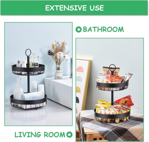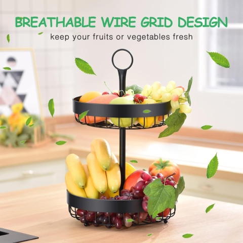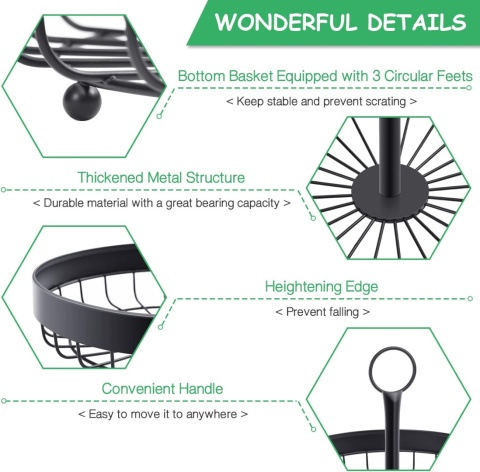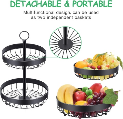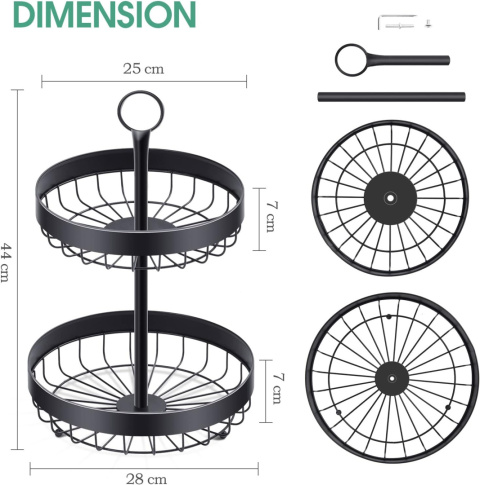 - Duża pojemność 2 poziomów: w porównaniu z innymi metalowymi koszykami na owoce nasz kosz na owoce ma dużą pojemność 2 poziomów, idealnie atrakcyjny kształt tortu. Może zaoszczędzić dużo miejsca. Ten 2-poziomowy kosz na owoce można umieścić na środku stołu w jadalni lub na blacie kuchennym.