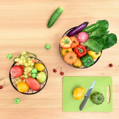 - Wspaniały i funkcjonalny design: Ten stylowy i funkcjonalny dwuwarstwowy koszyk na produkcję świetnie będzie wyglądał na ławce kuchennej, na blacie, stole śniadaniowym lub stole w jadalni. Idealnie komponuje się z wiejskim stylem, tradycyjnymi i nowoczesnymi dekoracjami i będzie idealnym uchwytem na owoce lub koszykiem na warzywa do kuchni.