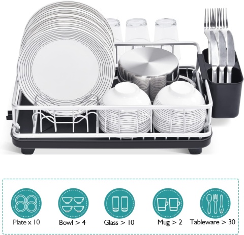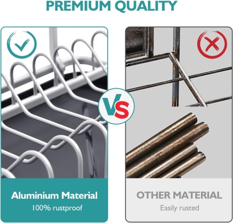 - Praktyczny i wielofunkcyjny: ten aluminiowy stojak na naczynia o mocnej strukturze umożliwia przechowywanie wszelkiego rodzaju zastawy stołowej, takich jak 10 talerzy, 10 szklanek, 2 kubki, ponad 4 miski i 20 widelców i noży. Dzięki temu zastawy stołowej będą uporządkowane. W przeciwieństwie do większości produktów dostępnych na rynku, możesz go czyścić bez wysiłku, utrzymując kuchnię w porządku i porządku.