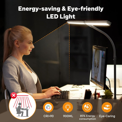 APMIEK Lampa biurkowa z podwójną głowicą ściemniana 24 W 100 trybów