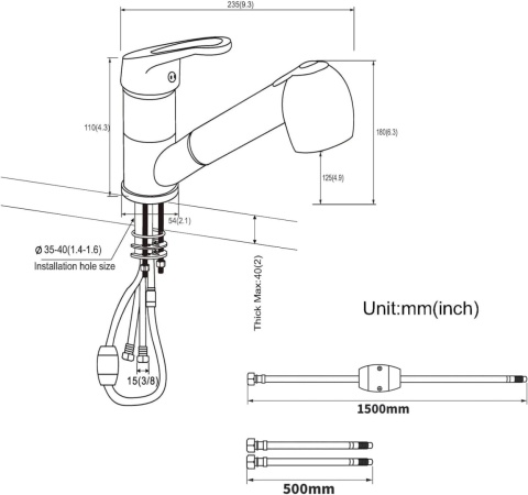 • ŁATWY W INSTALACJI: Otwór montażowy: ø35-40 mm. Odpowiednia grubość płyty montażowej: 1-40 mm.