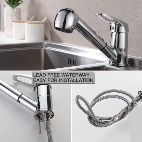 • Auralum wysuwana jednouchwytowa bateria kuchenna , chromowana