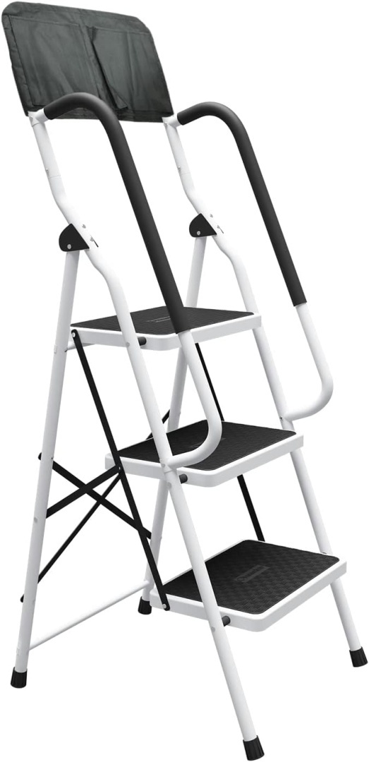 - √ Wysoka jakość: 3-stopniowa drabina wykonana jest z litej stali metalowej, a powierzchnia jest pokryta lakierem do pieczenia, aby zapobiec korozji i rdzewieniu, co zapewnia, że może być używana przez długi czas.