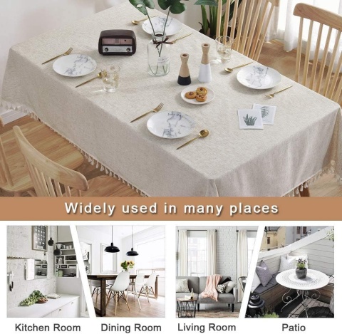 - Trzy rozmiary: 140 x 140 cm (140 x 140 cm), 140 x 220 cm. Lniany obrus boho nadaje się do większości domowych prostokątnych stołów i może zaspokoić różne potrzeby.