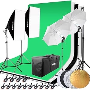 - 【System ekranu fotograficznego】 W zestawie softbox do studia fotograficznego zawiera system tła maks. szer. x wys. 200 x 200 cm i 4 tła fotograficzne szer. x wys. 1,6 x 3 m, czarno-biały zielony ekran. Tło fotograficzne nadaje się do portretów, fotografii produktowej YouTube wideo lub wywiadów
