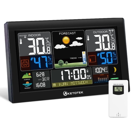 KETOTEK Bezprzewodowa stacja pogodowa z wyświetlaczem VA