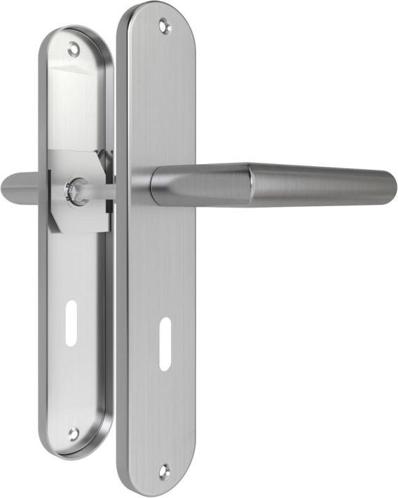 • ➤ Klasyczny kształt długiego szyldu o nowoczesnym wzornictwie, nierdzewna stal szlachetna o matowej, srebrnej powierzchni. Nadaje się do wszystkich powszechnie stosowanych drzwi pokojowych