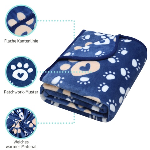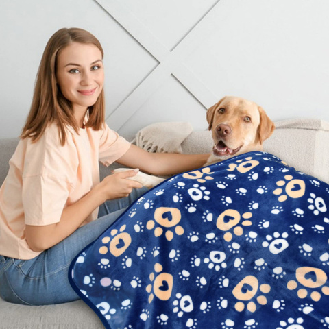 Cechy koca dla zwierząt Ten koc dla psa i kota jest specjalnie odpowiedni dla dużych psów, pogrubiony materiał, uroczy odcisk łapy i wyrafinowany wzór krawędzi, odporny na zużycie i zarysowania, dzięki czemu Twój przyjaciel może cieszyć się komfortem i miękkością
