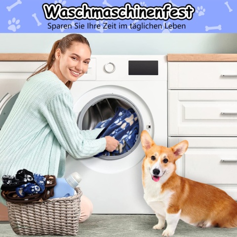 Łatwy do czyszczenia i szybkiego schnięcia Ten koc dla psa można prać w pralce i schnie w mgnieniu oka. I nie blaknie ani nie zostawia ani jednego kłaczka. Wodoodporny koc dobrze radzi sobie z kroplami wody na sierści Twojego zwierzaka i zapewnia, że nie przedostaną się one na podłogę ani łóżko. Zapewnij swojemu pupilowi czyste, higieniczne i relaksujące środowisko