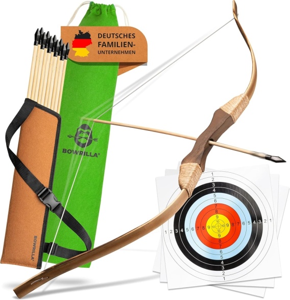 BOWRILLA® Strzałka i łuk dla dzieci | łuk dziecięcy z 10 strzałkami, futerałem i 3 tarczami strzelniczymi, zestaw dla dzieci z torbą do przechowywania | nadaje się dla osób prawo- i leworęcznych