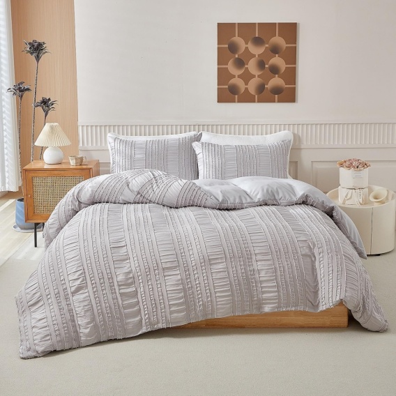 • Luofanfei Pościel 155 x 220 cm, szara, jasnoszara, jednokolorowa, boho