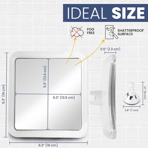 Mirrorvana Lustro prysznicowe zapobiegające zaparowaniu, z przyssawką, lusterko do golenia, do prysznica, bez zaparowania, do łazienki, 16 x 16 cm