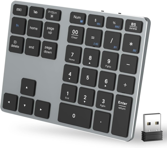 - Tryb podwójny, 3-kanałowe połączenie: ulepszona klawiatura numeryczna Bluetooth obsługuje zarówno bezprzewodowe połączenia USB 2,4 G, jak i Bluetooth 5.0 (zakres roboczy wynosi do 32,8 stóp), a technologia Bluetooth umożliwia jednoczesne połączenie dwóch urządzeń. Oznacza to, że można jednocześnie podłączyć trzy urządzenia i płynnie przełączać się między nimi. Idealny dla wszystkich, którzy chcą pracować wydajnie.