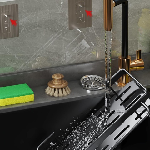 - Organizer na zlewozmywak bez wiercenia: nasz organizer na zlewozmywak | kosz prysznicowy można łatwo zamontować na ścianie za pomocą bezszwowej naklejki, bez uszkodzenia ściany.
