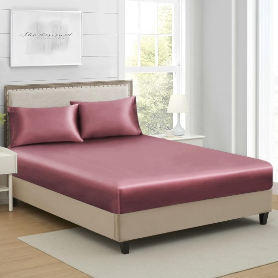Satynowe prześcieradło z gumką: Podobnie jak luksusowe, wysokiej jakości prześcieradło jedwabne, satyna jest gładka i lśniąca od momentu, gdy położysz ją na łóżku, nadając sypialni elegancką i romantyczną atmosferę.