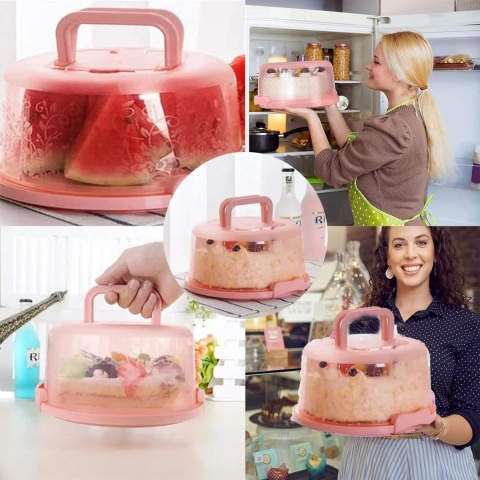 • 【Pojemność rozmiaru】: przenośny pojemnik na ciasto, średnica (na dole): 25 cm, wysokość: 13 cm. Stojak na ciasto może pomieścić ciasto 20 cm. Kolor: przezroczysta pokrywa, talerz, pokrywka i uchwyt różowy.