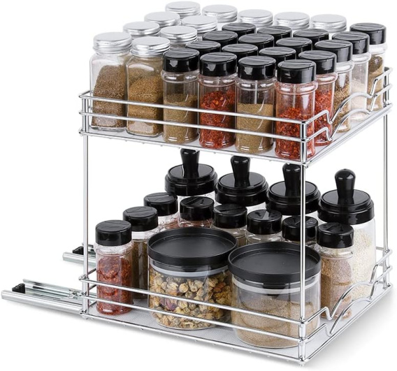 • Regulowana i rozszerzalna przyprawa: zapewnia idealne dopasowanie i pełny dostęp do wszystkich przypraw i butelek w głębszych szafkach