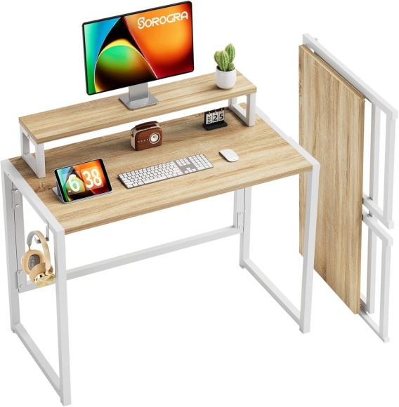 SOROGRA Mały Składany Stół, 80 cm, Biurko z Ustawieniem Monitora, Przenośny Stół do Biura Domowego, Sypialni i Pokoju Roboczego, Stabilny, Łatwy Montaż, Dąb.