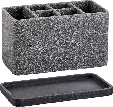 Ciężki i trwały: Organizer na umywalkę łazienkową jest wykonany z wysokiej jakości żywicy, ciężki i gruby, nigdy się nie przewróci i nie pęknie łatwo. Atrakcyjny wygląd granitu sprawia, że jest to dobry dodatek do Twojego blatu