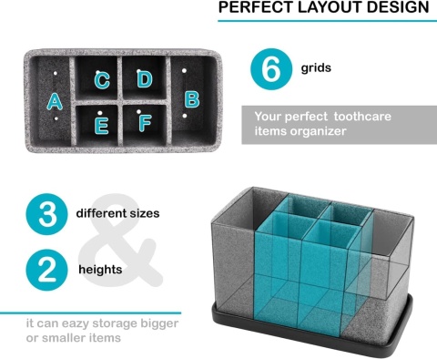 Duży elektryczny uchwyt na szczoteczki do zębów: Z 6 przegródkami do przechowywania uchwyt na szczoteczki do zębów ma wystarczająco dużo miejsca na szczoteczki do zębów, pastę do zębów, nić dentystyczną, maszynkę do golenia, grzebień, golarkę, trymer do brwi, pędzle do makijażu i nie tylko