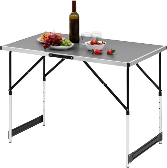 • Składany stół z uchwytem na kemping: Nogi stołu można złożyć w celu łatwego transportu i przechowywania (wymiary po złożeniu: 60 x 3 x 100 cm). Uchwyt i niewielka waga 3,8 kg zwiększają komfort noszenia.