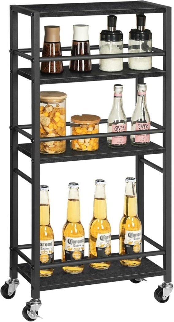 - Wózek kuchenny z 4 poziomami: ten wózek na napoje urzeka swoją otwartą strukturą z czterema poziomami i różnymi odstępami między poziomami, idealny do przechowywania przedmiotów o różnej wielkości. Otwarta konstrukcja zapewnia łatwy dostęp