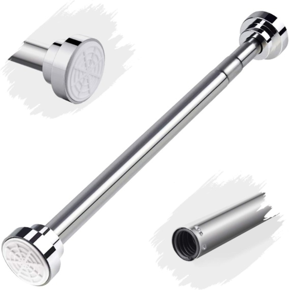 - Wysokiej jakości materiał: nasz wysuwany karnisz, który jest odporny na rdzę i korozję, jest wykonany ze stali nierdzewnej i chromowanego tworzywa sztucznego z gumą. Można ich używać przez długi czas.
