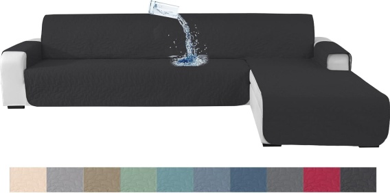Ystyle Pokrowiec Na Sofę Narożnik 4-Osobową, Wodoodporny Odwracalny Pokrywa Na Kanapę, Ochraniacz Na Sofę Z Lewym Prawym Półwyspem, Narzuty Na Sofy Kształcie Litery L (285cm, Czarny)