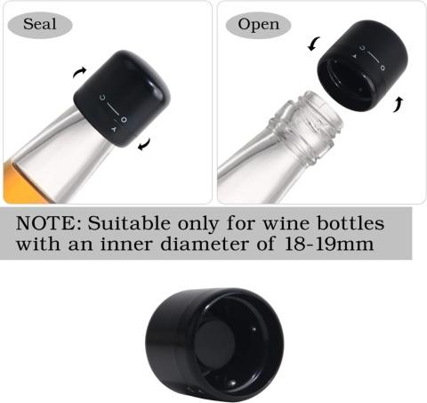 - Zachowaj świeżość: Zestaw z 2 zatyczkami do wina posiada hermetyczne zamknięcie, aby konserwować otwarte butelki wina. Pasuje do wszystkich powszechnie stosowanych butelek czerwonego i białego wina. Łatwy w użyciu: Obrócić górną część na